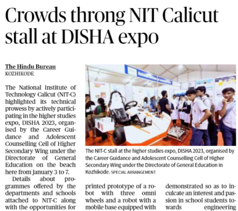 The team exhibited the electric Go-kart for the Disha 2022 exhibition, and co-ordinated with the CCD to introduce NITC to the public.